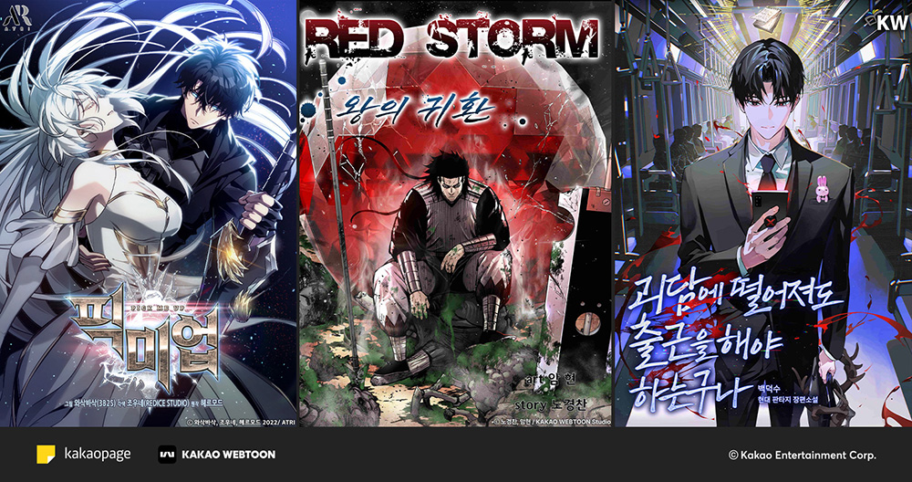 카카오엔터테인먼트가 지2026년에도 인기를 지속 견인할 웹툰, 웹소설 스테디셀러 3편을 공개했다. 선정작은 판타지 웹툰 ‘픽 미 업!’, 액션 웹툰 ‘레드스톰-왕의 귀환’, 현대판타지 웹소설 ‘괴담에 떨어져도 출근을 해야 하는구나(이하 괴담출근)’이다.