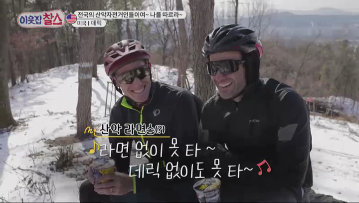 아직 산속의 눈이 채 녹지 않아 산악자전거 전문가인 데릭과 그의 친구 마이크도 산을 오르기 만만치 않은 상황. 하지만 위험하고 아찔한 눈 덮인 계족산을 두 사람이 힘겹게 오르는 단 하나의 이유! 그것은 바로 돈 주고도 살 수 없는 절경을 바라보며 먹는 뜨끈한 컵라면 한 사발의 매력 때문이라고.