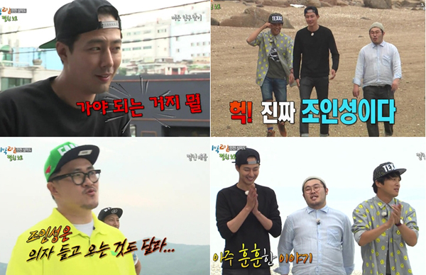 이른 아침 카페에서 김기방과 모닝커피를 즐기고 있던 조인성은 모자부터 신발까지 스타일리시한 모습으로 그 누구보다 빛나는 자태를 뽐내고 있었으며, 차태현과 자연스러운 스킨십을 선보였다. 또 스태프들에게 먼저 다가가 인사를 건네는 예의 바른 모습으로 시선을 사로잡았다. 이어 차태현과 마주보고 앉은 조인성은 그의 돌발 여행 제안에 당황해 웃는 모습으로 눈길을 끌었다. 하지만 차태현의 "가자!"라는 한마디에 잠시 고민하다 이내 "이렇게 되면 가야 되는 거지 뭘"이라며 대답했다.