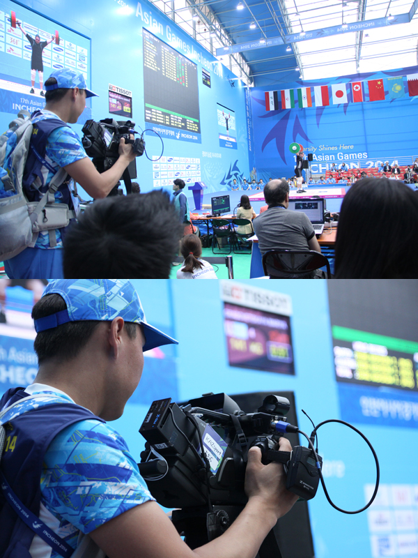 지난 26일 인천 연수구 송도동 달빛축제정원 역도경기장에서 열린 여자 최중량급(75kg 이상) 역도 경기장에는 7개국(한국, 중국, 태국, 카자흐스탄, 몽골, 네팔, 베트남)의 대표로 나온 10명의 선수들이 경기를 펼쳤다. 그 중 카자흐스탄 취재진은 자국 선수인 그라포페스카야 마리아 선수가 출전하자 자리를 옮기며 그라포페스카야 마리아 선수의 경기 장면을 생생하게 담았다.