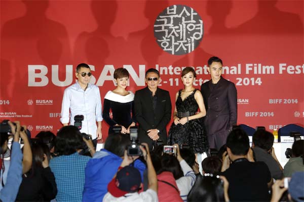 부산영화제 개막작 '군중낙원' (제일 왼쪽이 천지앤빈, 네번째가 완치앤)