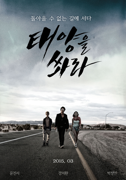 '태양을 쏴라'의 티저 포스터는 도로 위에 위태롭게 서 있는 가질 수 없는 꿈을 꾼 세 남녀가 눈길을 끈다. 특히, 라스베가스, LA 등지에서 올로케이션으로 촬영된 '태양을 쏴라'는 티저 포스터에서도 이국적인 배경이 눈에 띄는데, 하늘과 맞닿은 넓은 도로를 뒤로 하고 외로이 걷고 있는 세 남녀가 화면을 압도해 기대감을 더욱 증폭시킨다.