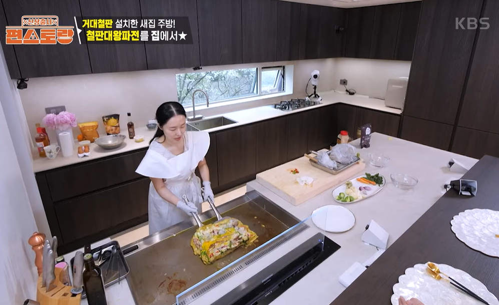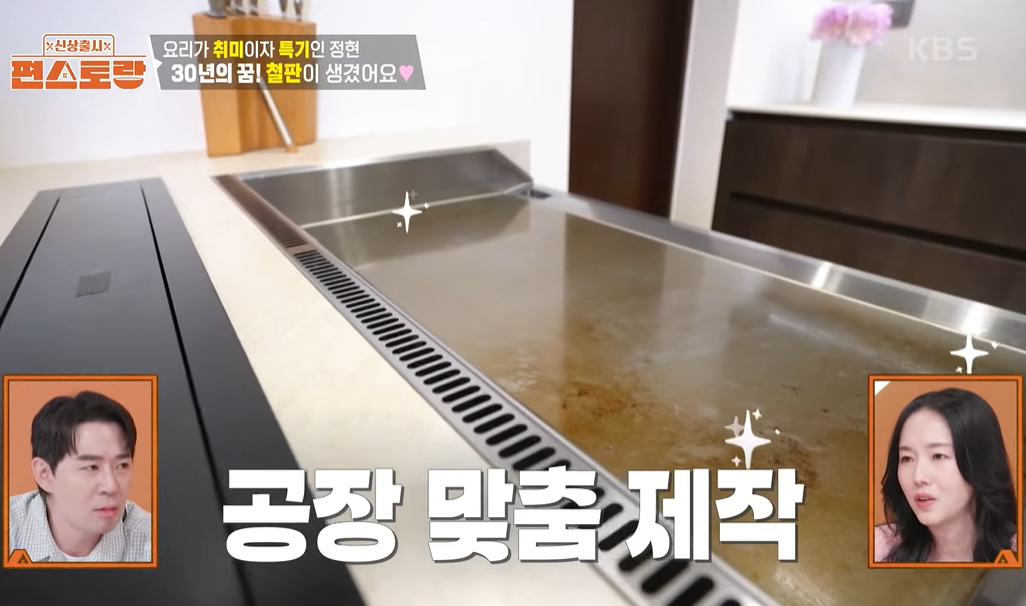 이정현이 주방에 초대형 맞춤 철판을 설치했다.
