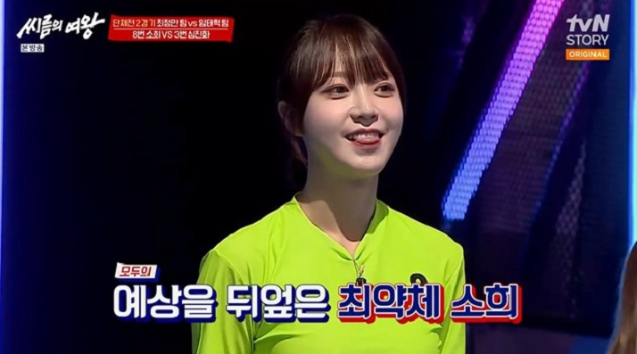 소희는 지난 9일 방송된 tvN STORY, ENA채널 공동제작 예능프로그램 ‘씨름의 여왕’에서 기술을 완벽히 구사하며 팀의 승리를 이끌었다.