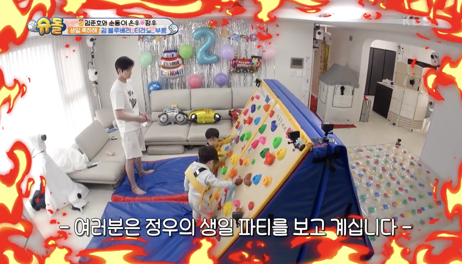 생일을 맞은 24개월 정우의 특별한 하루가 그려졌다. 거실 천장에 매달린 선물 상자를 발견한 정우는 형 은우와 함께 줄을 잡아당겼고, 상자 속에서 젤리와 비타민이 쏟아지며 깜짝 선물이 펼쳐졌다.