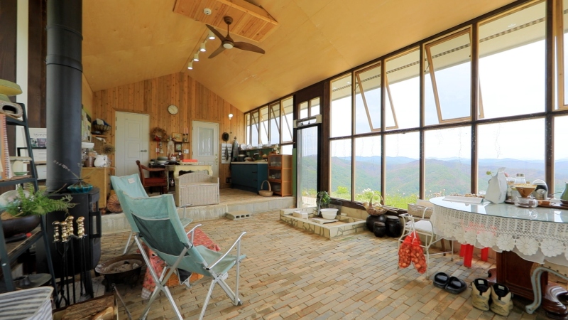 경북 청송 깊은 산 속, 사과밭 한가운데 내부가 투명하게 비치는 온실 집이 자리 잡고 있다. 널찍한 온실 옆에 집이 붙어있는 독특한 구조인