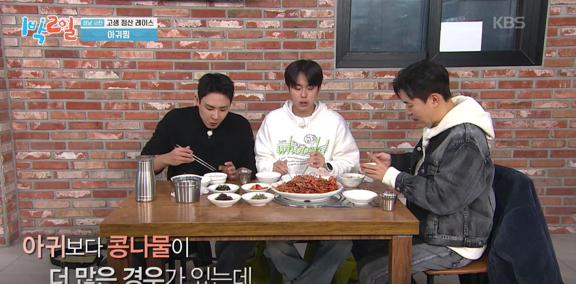 김종민, 이준, 유선호가 점심 메뉴로 아귀찜을 선택했다.